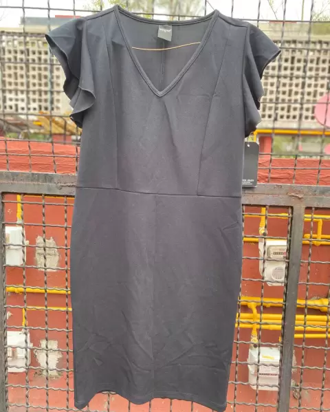 Vestido ideal para una salida al café, al cine, a la oficina o una reunión casual. Olanes en mangas