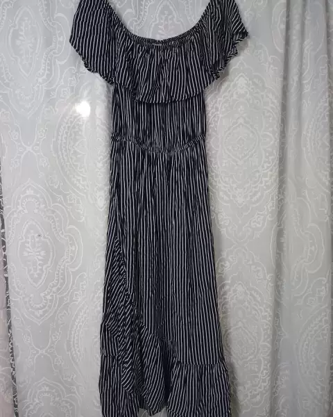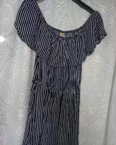 Vestido casual. Vestido color azul intenso , y rayas blancas en talla 7, que sería mediana. Nuevo solo se utilizo una vez