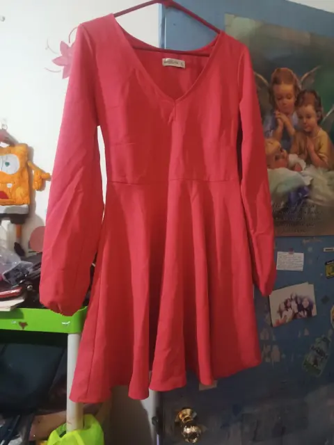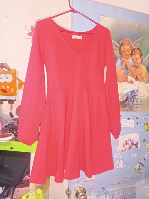 Vestido casual abercrombie, color tipo coral, manga larga , cierre al costado, talla chica. De armario Falda tipo princess