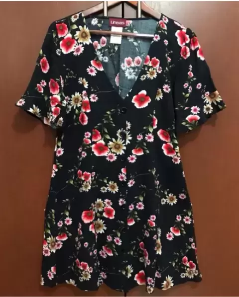 Vestido casual corto. Bonito vestido color negro con estampado de flores, excelente para esta primavera está casi nuevo solo lo use 1 vez ⭐️ MEDIDAS largo 96cm axila a axila 55 cm de hombro a hombro 45 cm ⭐️