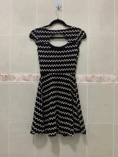 Vestido casual corto. Vestido corte princesa, manga corta con abertura redonda en la espalda. Forrado por dentro.Medidas/ hombro a hombro: 35 cm, busto: 32 cm, cintura: 28 cm, largo: 84 cm, cadera: 49 cm.