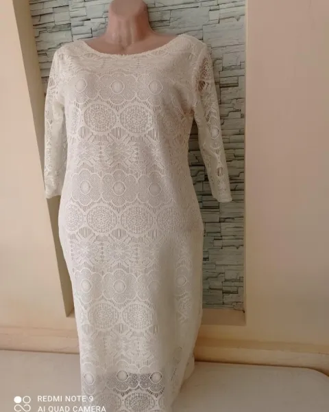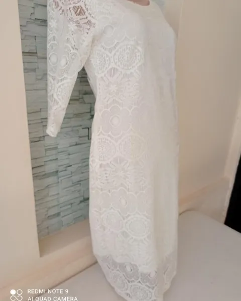 Vestido casual corto manga 3/4. Vestido casual corto manga 3/4 Blanco perla a la rodilla