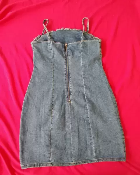 Vestido casual de mezclilla H&M, talla S.Tiene un cierre en la parte trasera.Mide 40 cm en cintura como se ve en la foto dea cinta métrica.