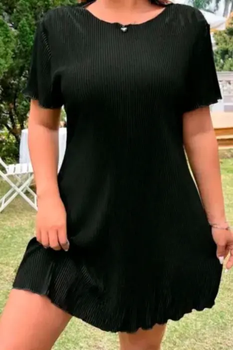 Vestido casual de tela acanalada 98 cm pecho, 92 cm cintura, 92.5 largo, la etiqueta dice 2xl pero esta muy reducido, queda a una talla L.Envio a la brevedadTodas las compras incluyen obsequio