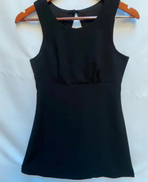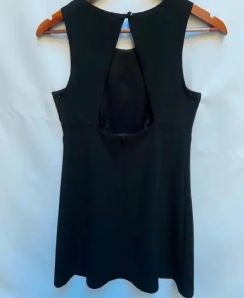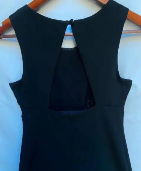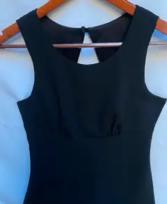 Vestido casual en poliéster y stretch.. Vestido casual en poliéster y stretch. Escote redondo, corte debajo del busto y fruncido en este para mejorar la apariencia de esa zona. Falda línea “A”. Espalda descubierta en forma de gota. Botón de seguridad y cierre. Talla: M (30-32) Marca: BIYER TOO! CALIFORNIA.