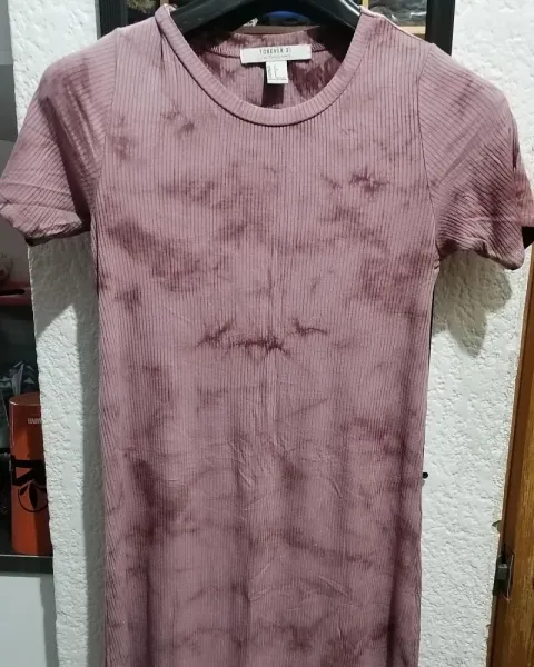 Vestido casual forever 21. Vestido forever 21 talla S rosa tie-dyeApertura en la espaldaYo mido 1.60 y me queda arriba de la rodilla.Estira bastante así que le queda a una talla M