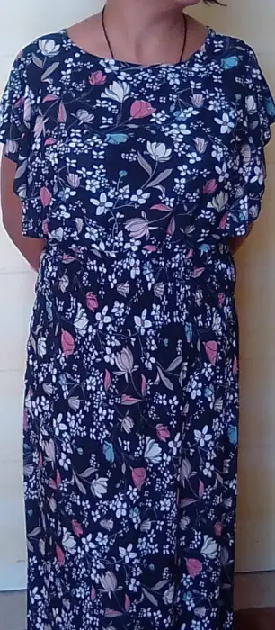 Vestido casual largo. Funciona para la playa o para un cumpleaños, es fresco, detalle en la manga que lo hacen lucir. Talla chica o también queda mediana, en la cintura tiene elástico que permite estiramiento.