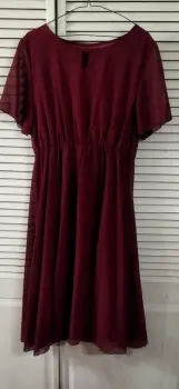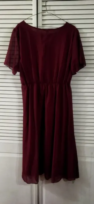Vestido casual largo en color vino. Vestido largo, tela fresca, tiene forro, manga corta, sin estampado, altura abajo de la rodilla