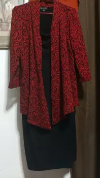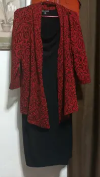 Hermoso vestido casual talla 14 color negro con saco incluido color vino, le puedo agregar un collar, se uso una sola vez. Esta divino