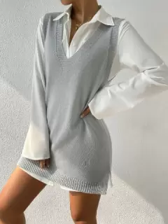 Vestido chaleco tejido gris. Vestido de shein tejido tipo chaleco, nuevo sin etiquetas es extrachico, pero esta muy suelto queda a cualquier tallaYo soy grande y me queda suelto