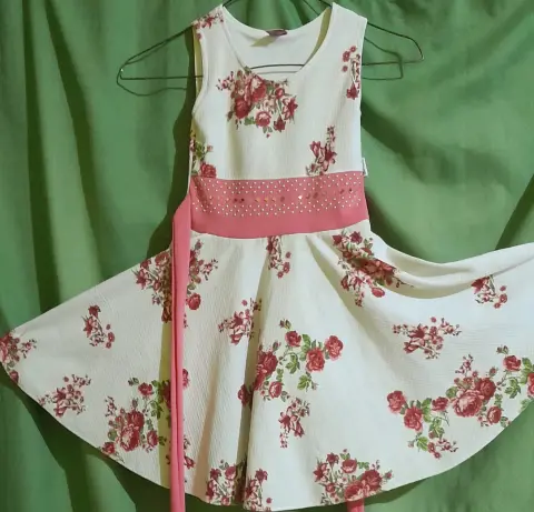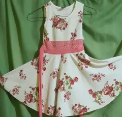 Vestido circular 2 piezas. Vestido circular tono beige y flores incluye torera. 65 cms largo, manga corta e incluye torera. Talla chica en junior.