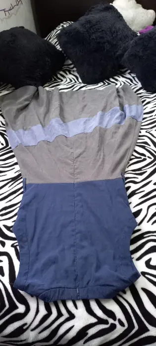 Gracias por tu visita ..En esta ocasión te traemos:..................................................................................TALLA xsMARCA iveeCOLOgris con azulSTRECH noTELA gamusaMADE IN usaMEDIDAS HOMBRO 32 cmAXILA 42 cmCINTURA 36 cmCADERA es sueltoLARGO 107 cm Desde el hombroLas medidas son de lado a lado de la prenda