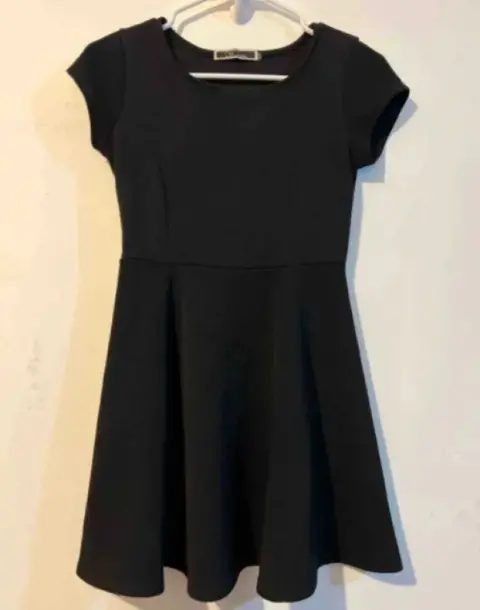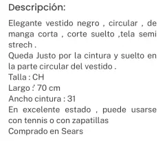 Vestido circular negro manga corta. Hermoso y elegante vestido color negro , manga larga .Talla:S Medidas se dejan en las imágenes en excelente estado .Comprado en sears