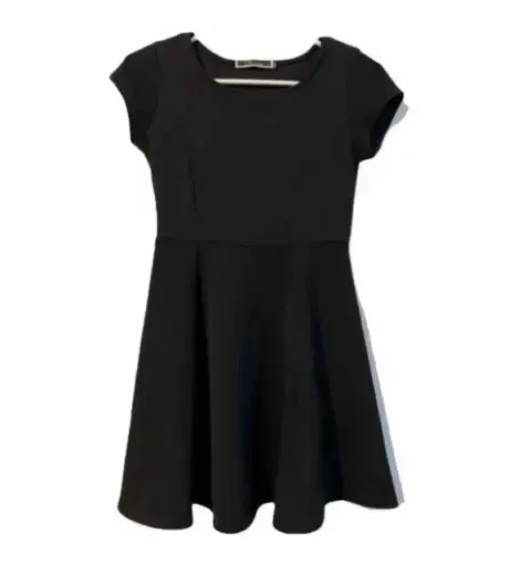 Vestido circular negro manga corta