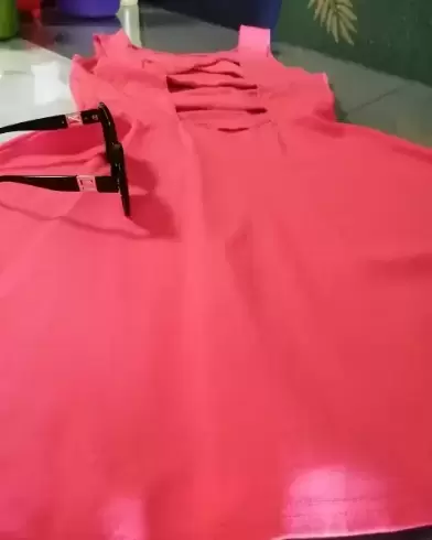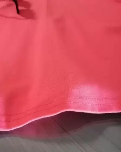 Es color durazno, la tela es gruesa, queda corto un poquito arriba de la rodilla, la tela estira bastante bien, muy favorecedor porque tiene peto alto. Luce muy lindo con zapatillas, para un look divertido casual. Sin detalles y en excelentes condiciones.