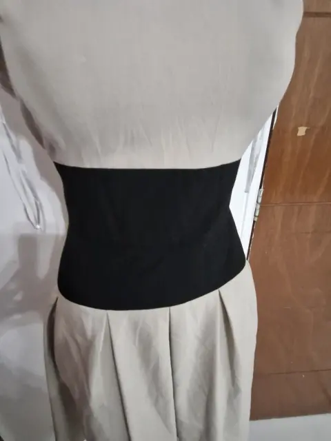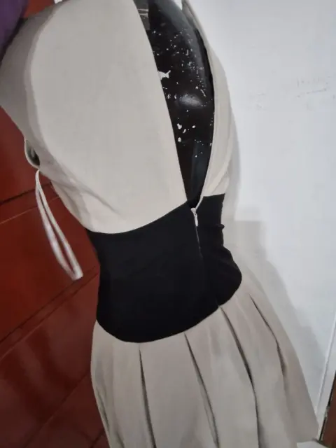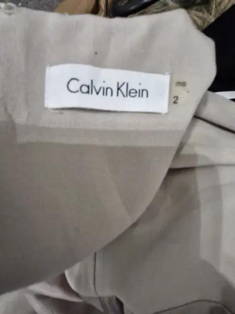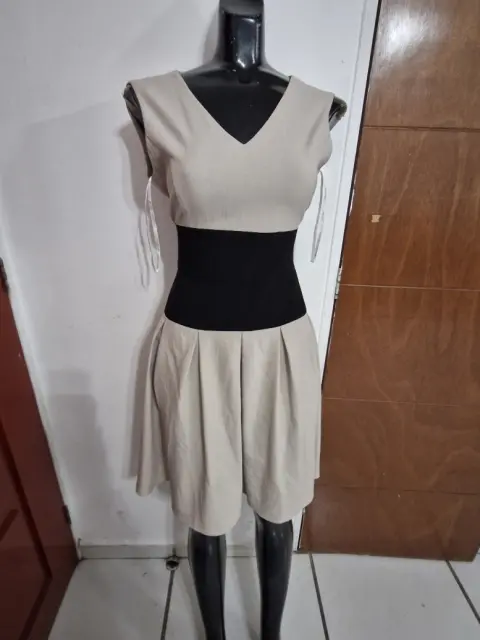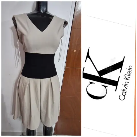 Lindo vestido ck , talla 02 queda super hermoso por que entalla de la cintura h la franja negra te hace ver muy acentuada. Pide medidas si es para talla S. El detalle solo está poco arrigadito, se uso un par de veces lo vendo por que ya no me queda.