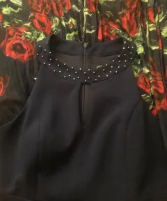Vestido philosophy jr, azul marino con detalles de pedrería en cuello,