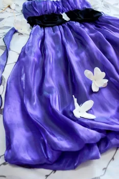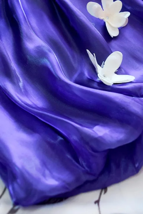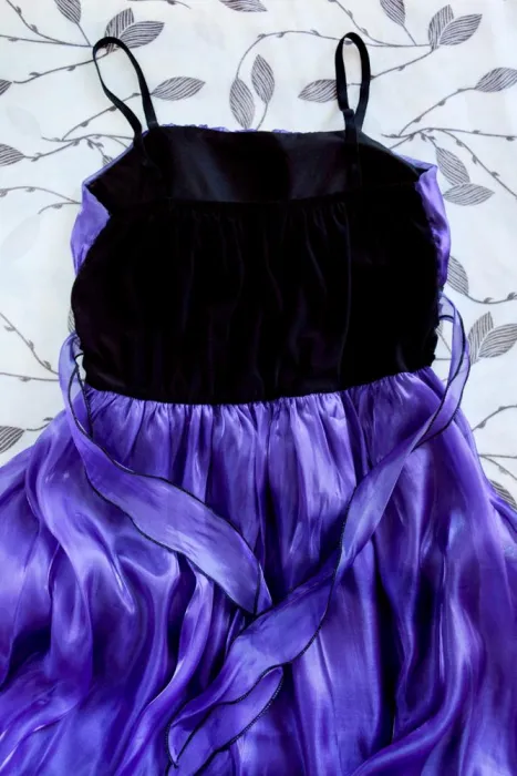 Vestido coctail morado tornasol, corte globo