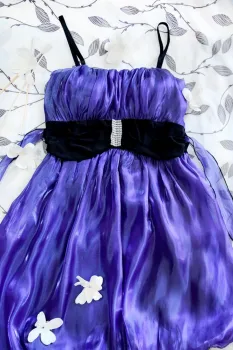 Vestido coctail morado tornasol, corte globo. *Vestido corte globo*Busto: Copa B*Alto: 67cm*Incluye juego de joyería de fantasía