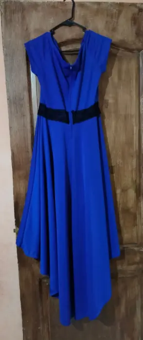 Vestido Coctel. Tiene colita larga, y de enfrente es corto. Lo usé en dos fiestas diferentes y para que no pareciera el mismo y los accesorios fueran diferentes le mandé poner un encaje en la parte donde va la cintura.Es unitalla, sin detalles.