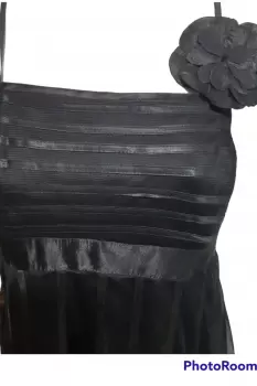 Hermoso VESTIDO COCTEL CORTO, CON TELA TRANSPARENTE Y TIRANTES, talla G con un lindo detalle de flor en un tirante, solo se uso una ocasión esta en perfectas condiciones y listo para lucirlo!!!