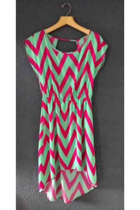 Vestido cola de pato. Vestido manga corta, cola de pato, estampado a rayas bicolor, con escote en espalda, Y resorte en cintura.