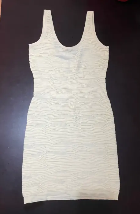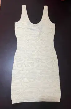 Vestido color beige con textura. Bonito vestido corto en color beige, con textura talla S-MCon medida de axila a axila de 45 cmY estiraDe largo mide 85 cm desde el hombro