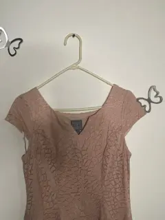 Vestido color palo de rosa. Vestido de noche o de día Semi largo Plisado y terminación en pocos Forro y cubierta de tela en red Manga media corta y elegante