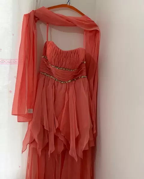Vestido color salmón corto. Vestido corto En excelentes condiciones Asimétrico de la parte de abajo