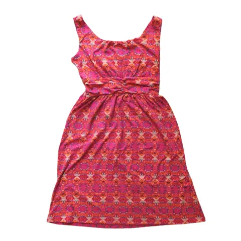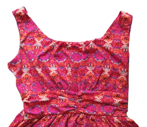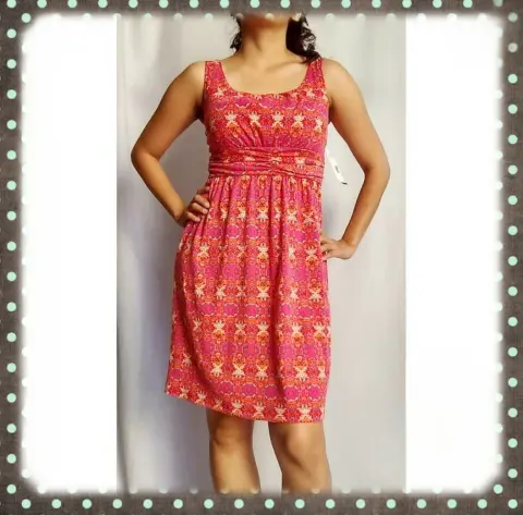 Vestido colorido y fresco Faded Glory. Vestido de colores llamativos, marca Faded Glory, talla S pero queda a una M también, 95% poliéster y 5% spandex. Tiene resorte en la cintura que estira. Nuevo con etiqueta.Hombro a hombro 35 cm.Axila a axila 39 cm.Largo total 75 cm.Resorte en cintura 33 cm, estira.