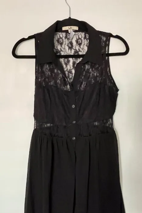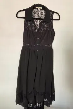 Vestido negro con transparencias en encajeLargo midi, con botas se ve increíblePara salir de noche o a una cita romántica. Buscamos dueña