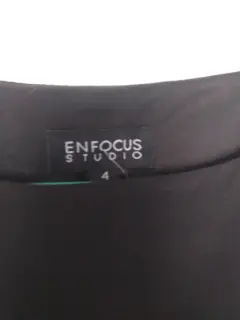 Vestido con encaje marca enfocus. Vestido marca enfocus negro con rojo,con encaje en los costados rojos,sin manga y cuello redondo talla chica