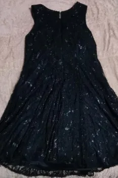 Elegante vestido con encaje azul marino, y perlas alrededor del cuello.NuevoTalla: 36Marca: Giannloui Ferre