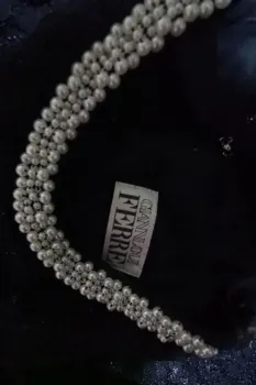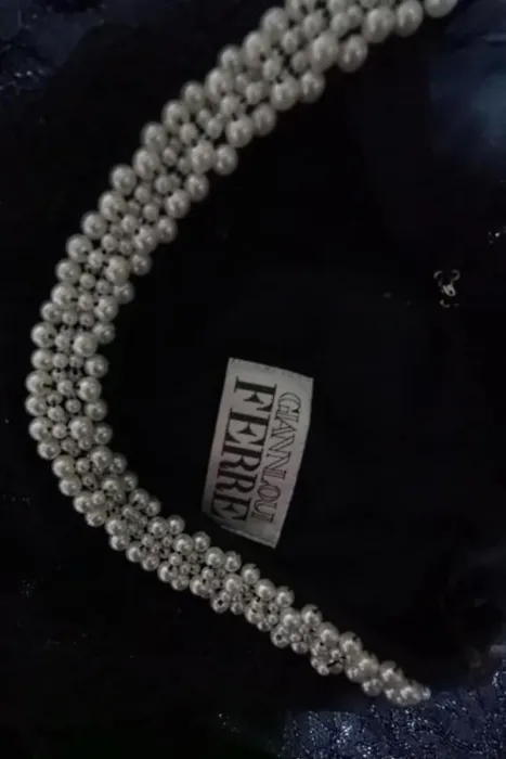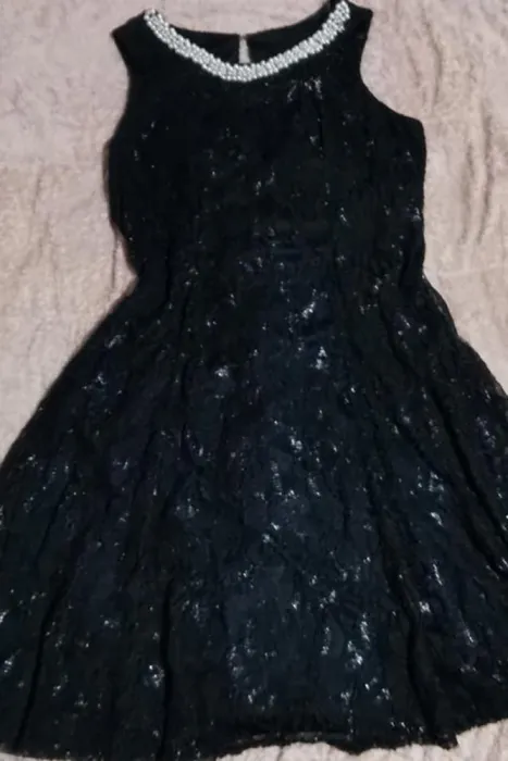 Vestido con encaje y perlas. Elegante vestido con encaje azul marino, y perlas alrededor del cuello.NuevoTalla: 36Marca: Giannloui Ferre