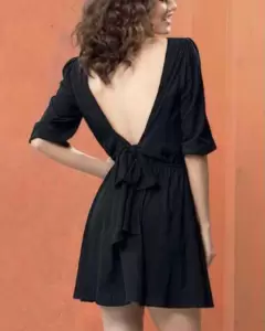 Vestido negro , con escote en la espalda y moño en la cintura . Marca Andrea , talla S.