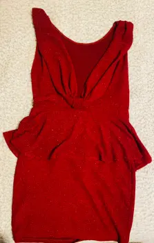 Rojo estilo peplum, con escote en espalda, tiene brillos y estira