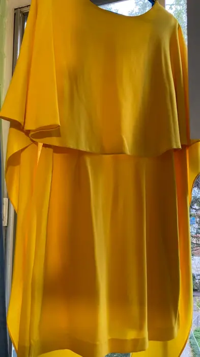 Vestido corto con espalda abierta y diseño de capa.Color amarillo canario (en la última foto se ve el color a la luz natural)Talla M/26Largo hasta la rodilla (yo mido 163cm)Solo se usó una vez y se compró en Zara.Anímate a preguntar y ofertar. 🤩Envió asegurado 📸