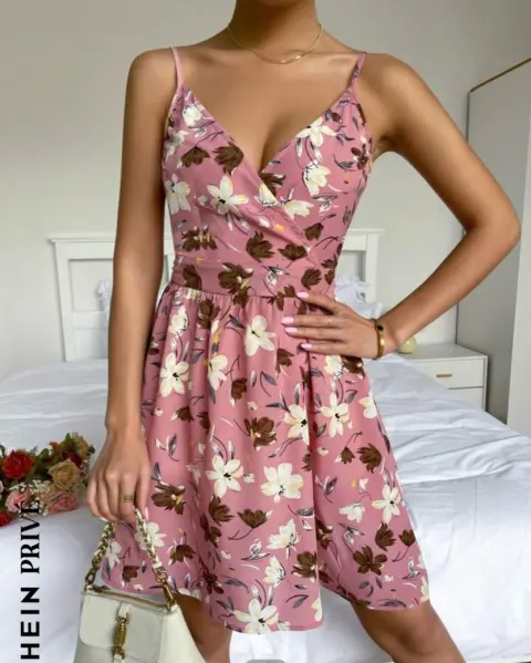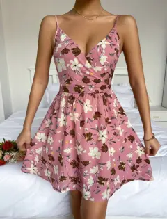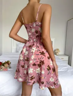 Vestido con estampado de flores. Hermoso vestido con estampado de flores, tela 100% de algodón, su color es palo de rosa con las hojas verde soldado, muy bonita combinación, trae corset en la parte de arriba, se puede usar sin tirantes, elástico en la espalda, no se trasparenta, sin detalles.