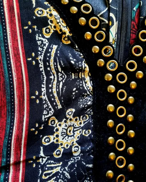 Vestido utilizado en 3 ocaciones, cuenta con detalle de terciopelo en cueyo y estoperoles que le dan un toque femenino y misterioso