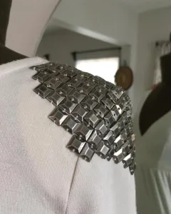 Vestido con estoperoles en hombros