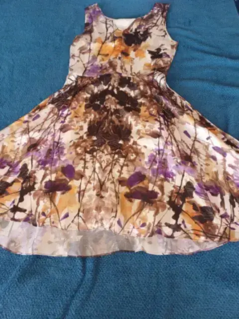 Vestido con flores seda, formal, corte a la cintura y largo a la rodilla, Dama Marca Ivonne Petite talla 8