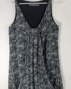 Vestido color gris con blanco, con escarola larga al frente, un poco bombachoIdeal para toda ocasion, comida formal, evento elegante casual, oficina, etc