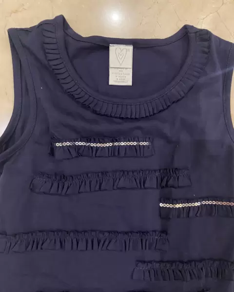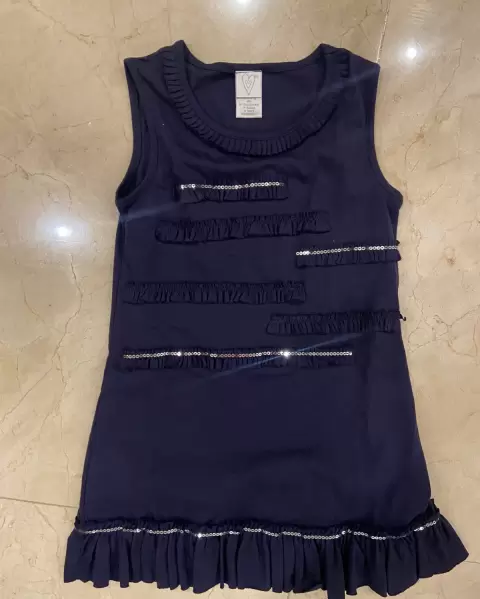 Vestido con lentejuela. Lindo vestido azul marino talla 5 Tiene líneas de lentejuela plateada dando un toque elegante