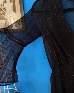 Hermoso vestido negro con lunares, l tela es transparente pero trae un fondo negro, las mangas están hermosas!!!