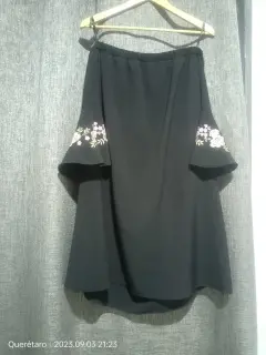 Vestido con Manga Holgada. Vestido de Manga Holgada, con Flores Bordadas y Cuello Campesino.