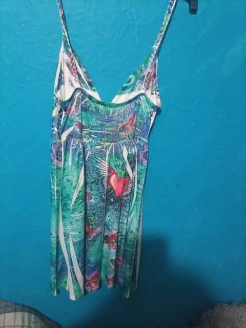 Vestido con mariposas y corazones. Marca s12 twelve.talla mediana .bonito vestido con brillos en el centro mariposas y 💕 corazones tipo playero tela que estira