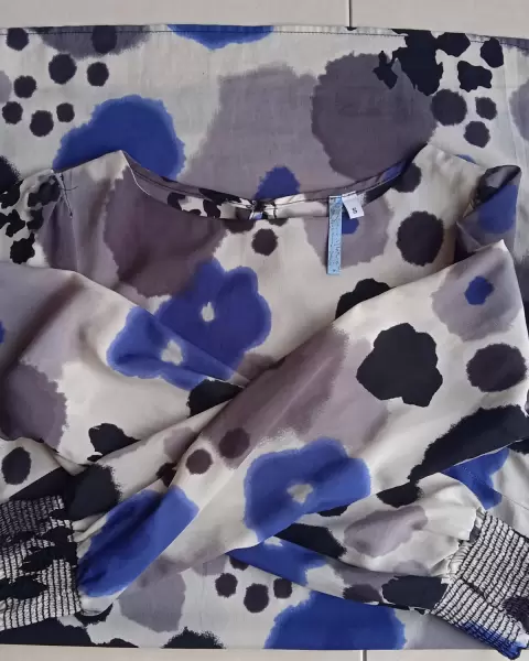 Vestido con motas azul-gris-negro. 👗Vestido ligero de manga larga con estampado de motas en colores azul-gris-negro ✨ súper casual✨