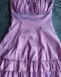 Vestido con olanes. Decoración de piedras en el área del busto Salvo que le faltan algunas talla 5 con olanes