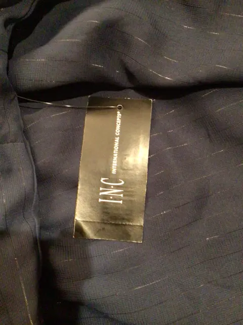 VESTIDO CON OLANES INC AZUL MARINO. VESTIDO MARCA INC INTERNATIONAL CONCEPS, TALLA M COLOR AZUL MARINO, CON OLANES MANGA LARGA, CUELLO REDONDO CON PEQUEÑO OLÁN, BOTÓN EN LA PARTE DE ATRAZ, CON ETIQUETA, ESPECTACULAR