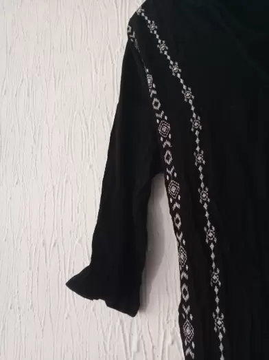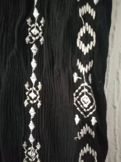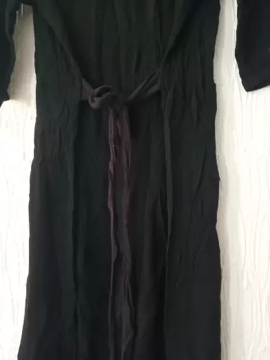 Vestido con tejido negro. Vestido con tejido en los costados y cordones al frente , cuenta con cordones en la parte de atrás para ajuste en la cintura.Tela suave y fresca .Largo 95 cm.